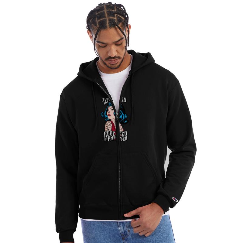 Keep yourself warm in style with the versatile Champion Unisex Full Zip Hoodie. Looks good with any outfit and adds a layer of coziness. Made from a blend of cotton and CICLO polyester, this all-rounder hoodie is also biodegradable and durable. With coverstitching and heavy rib knit waistband and cuffs for a comfortable fit, it is a must-have for everyone’s wardrobe.